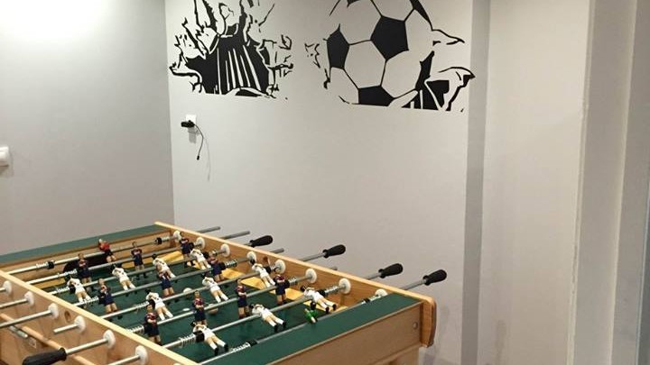 Futbolín, Piscina de bolas, Cocina, TV, Música, Juegos infantiles, Consola, Electrodomésticos, Wifi, Aire acondicionado, Sofás, Cambiador de bebés